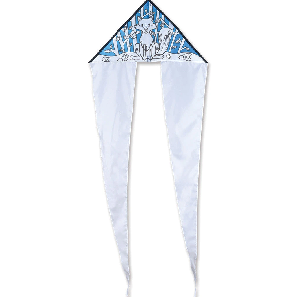 Premier’s Coloring Kites feature bold themes that are enjoyable to color and beautiful to fly. Some designs include background colors that are already pre-printed so anxious artists can finish their masterpieces for fast flying fun. All kites feature long flowing tails that can also be custom colored. Based on one of our most stable designs, artists will be proud to display their works high into the canvas of the sky. A set of eight crayons are provided; colored pencils and most markers will also work for coloring.